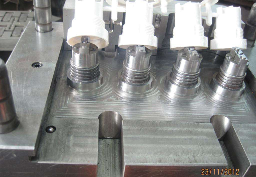 手動的螺紋通常用在產(chǎn)品量比較少的模具上。這種模具每次下的訂單比較少。要求也不高,所以做模具的時候,把螺紋做在鑲件上,再做一個靠模,注塑的時候,先把鑲件放到模具里,等注塑完成后,把鑲件拿出來,放到靠模上,把產(chǎn)品旋轉(zhuǎn)出來。這種方式是應(yīng)對小批量的產(chǎn)品。