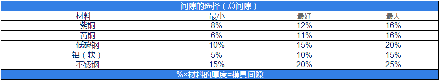 請參照下表選擇模具間隙(表中數(shù)據(jù)為百分數(shù))